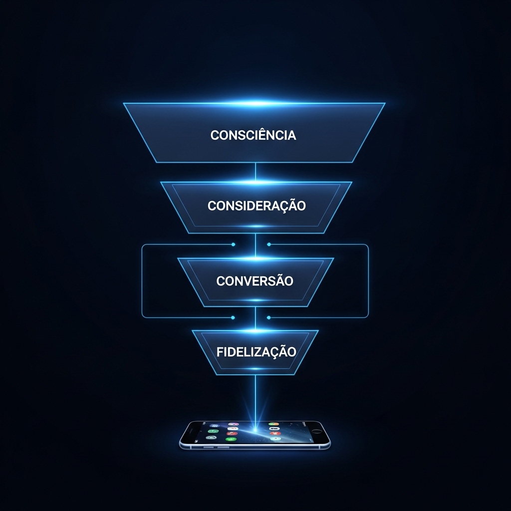 Não é só "criar post" ou "fazer anúncio". É um sistema integrado: atração, conversão e retenção funcionando ao mesmo tempo.